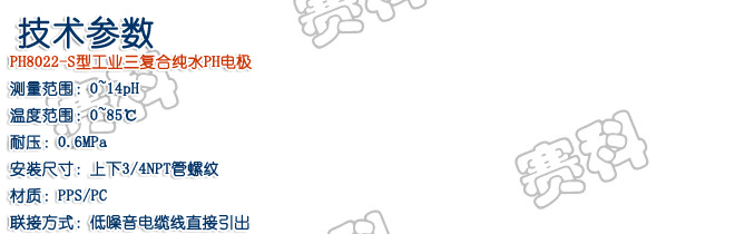 產品概述:PH8022-S型工業(yè)復合純水PH電極 新型設計的玻璃球泡,增加了球泡面積,防止內緩沖液中干擾氣泡的生成,使測量更加有效 采用PPS/PC外殼,上下3/4NPT管螺紋,安裝方便,不需要護套,節(jié)省了安裝成本0551-65281199 65281192