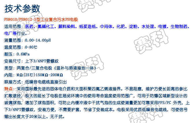 工業(yè)復合污水PH電極 PH8010-S/PH8012-S型點擊次數(shù):